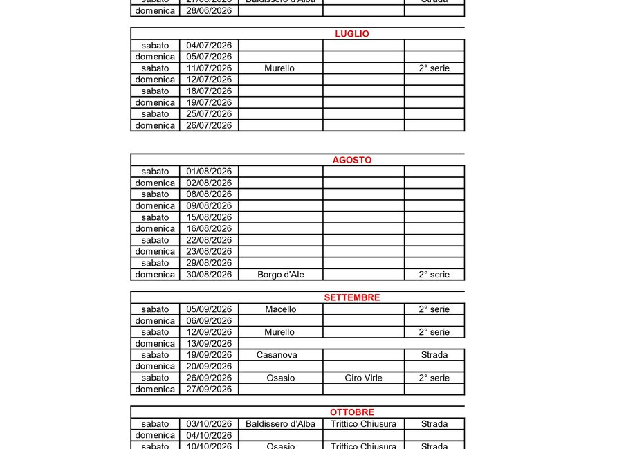 Calendario Ciclismo Strada Province di Torino e Cuneo